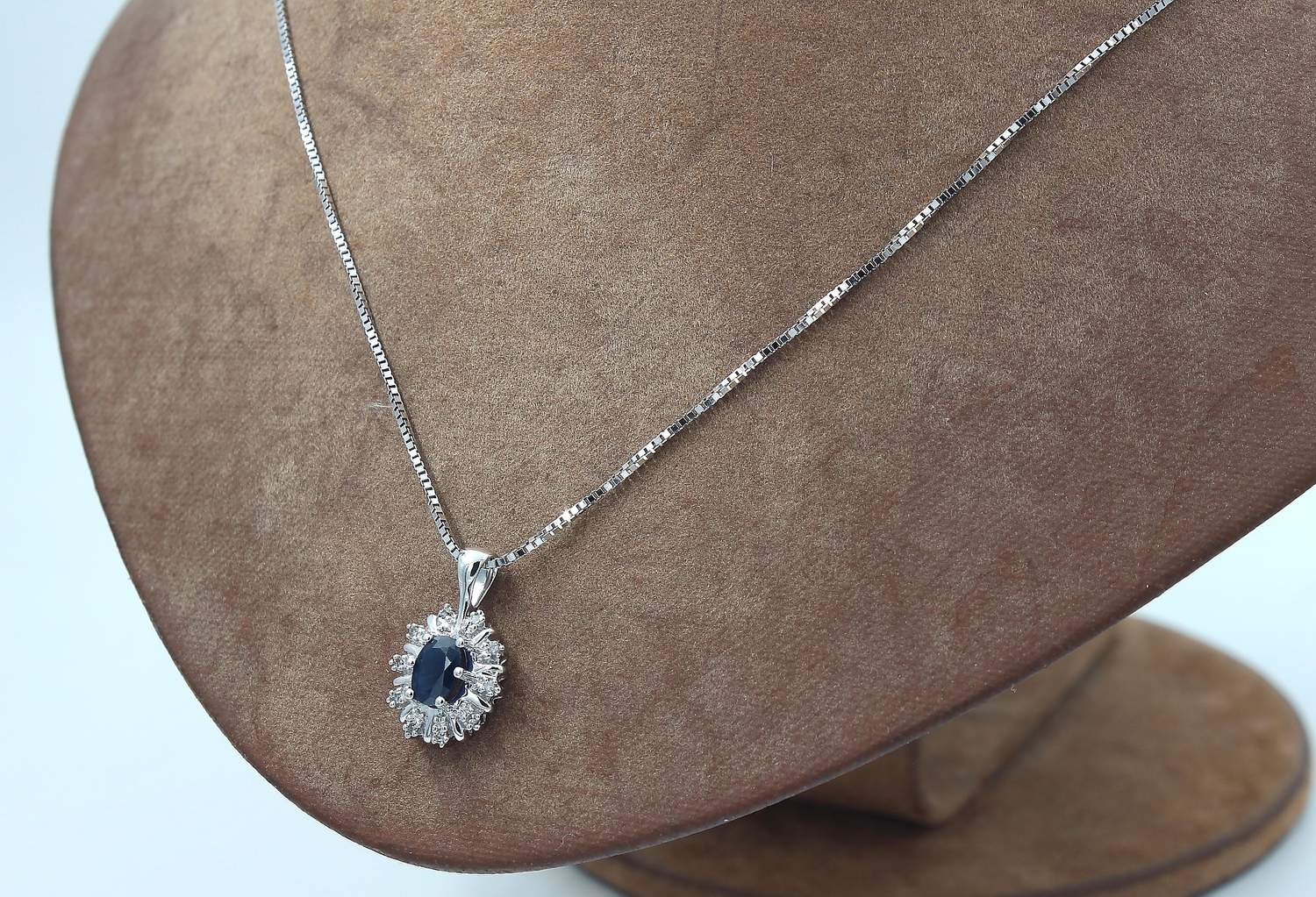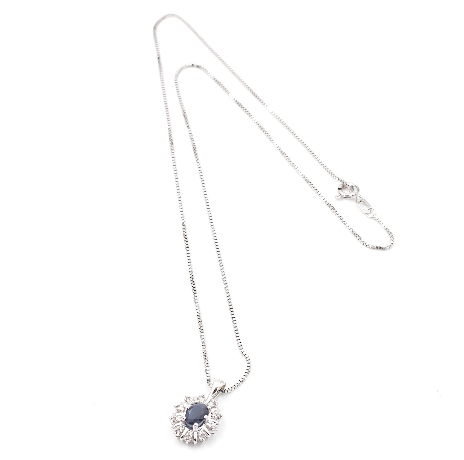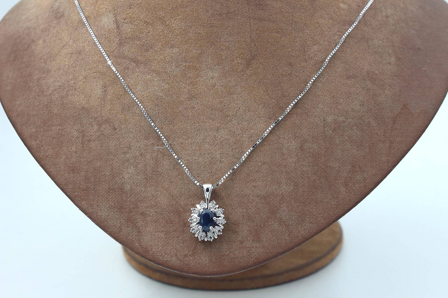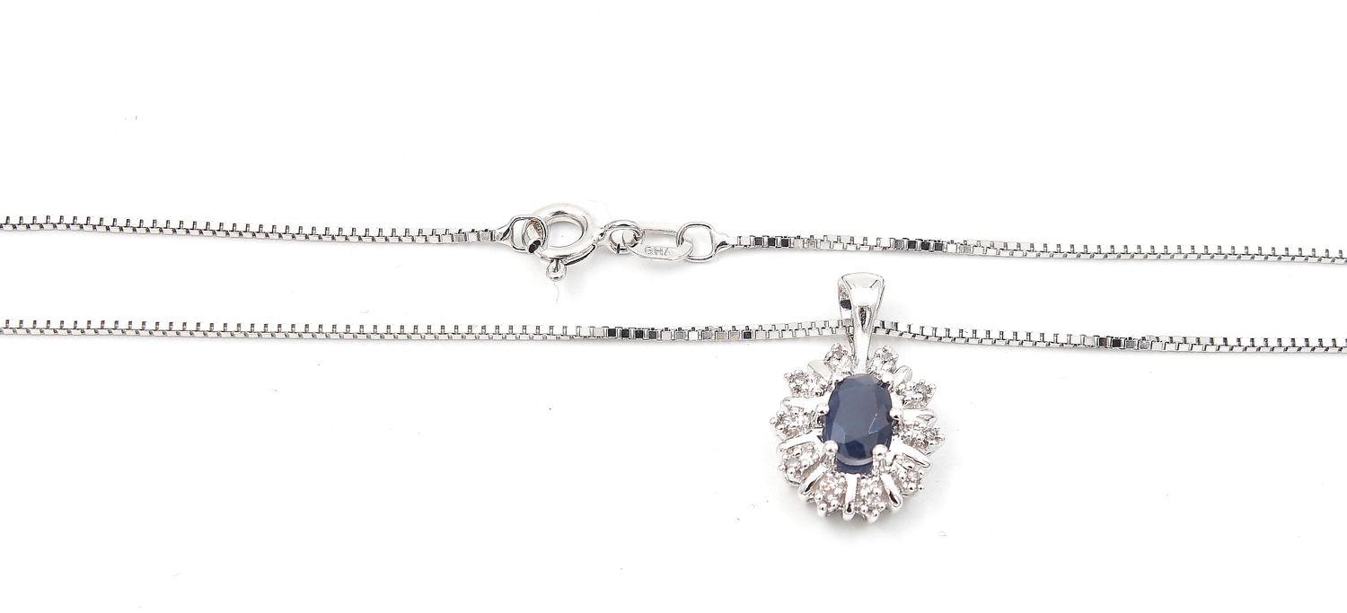 Halsband med diamant & safir hänge i 18k vitguld.