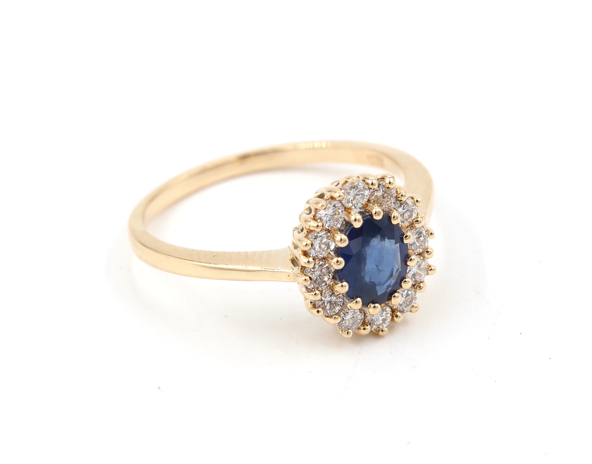 Ring med 12st briljantslipade diamanter på ca 0,12 ct totalt. G-VS och en safir.
