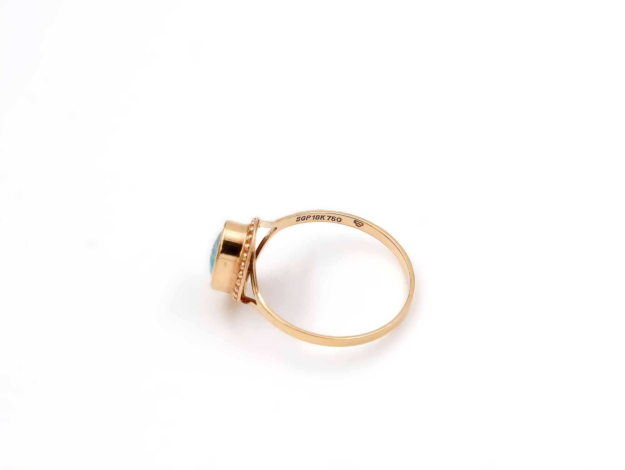 Ring i 18k guld med en strålande färgad sten. vikt 1.14g